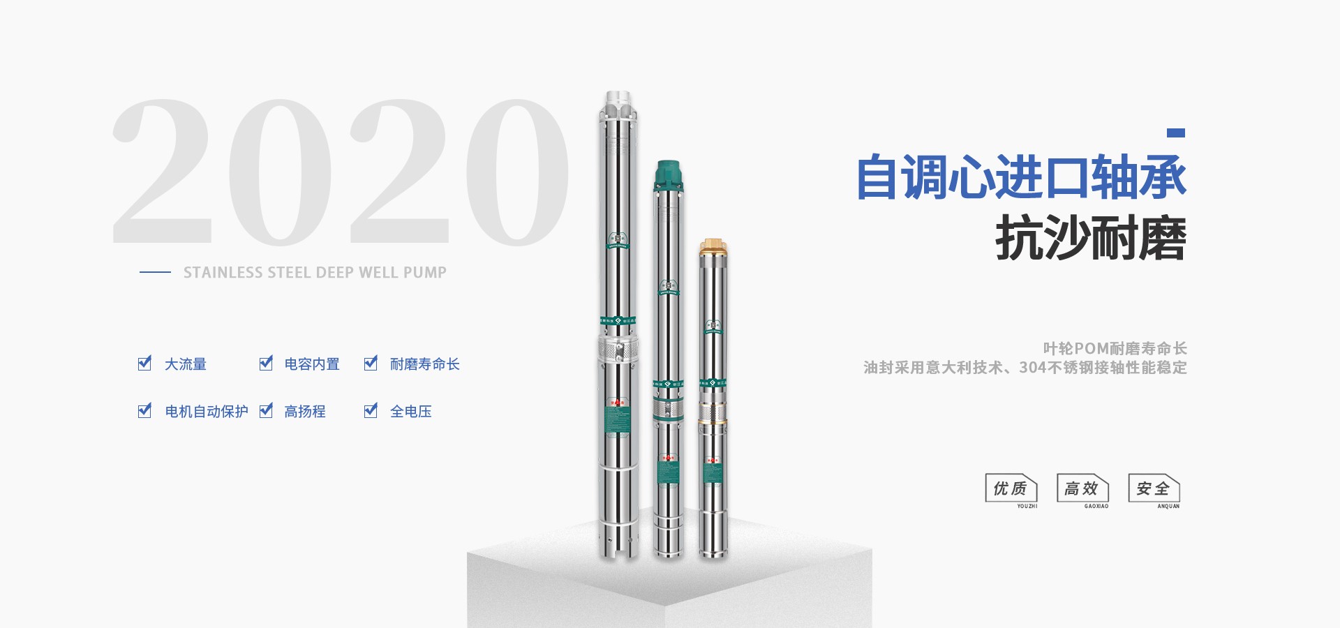 公司始終站在深井泵行業(yè)的前端位置,科研力量、產(chǎn)品和設(shè)備技術(shù)水平均達到國內(nèi)優(yōu)質(zhì)水平,公司始終堅持走科技興企、自主創(chuàng)新的企業(yè)發(fā)展之路,產(chǎn)品不斷推陳出新,可廣泛應用于農(nóng)業(yè)灌溉、生活用水、循環(huán)供暖、污水處理、市政供水、石油化工、冶金礦山等領(lǐng)域。